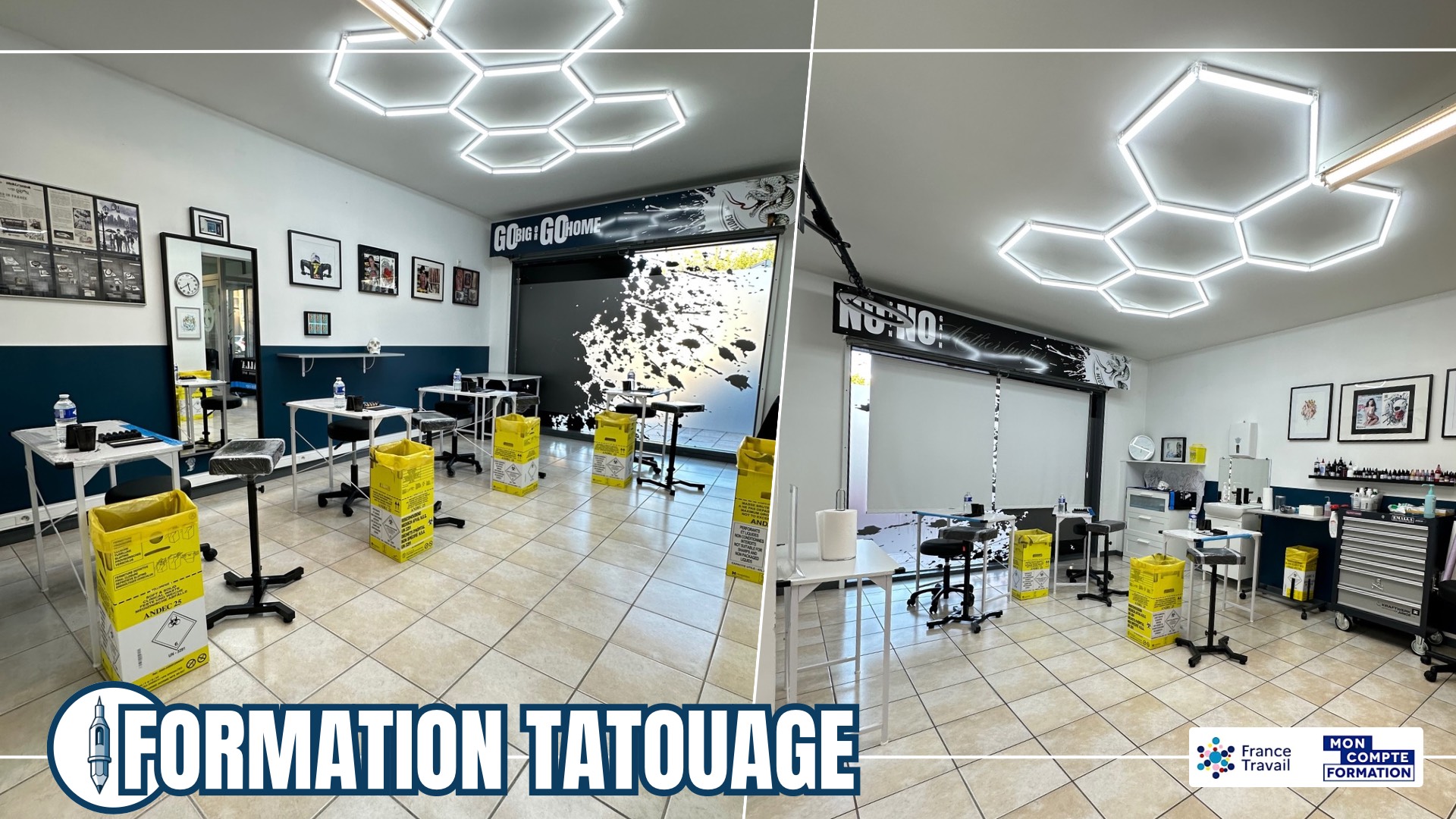 Immersion intensive 6 jours pour tatoueurs expérimentés, certifiante RS6681 et finançable CPF.